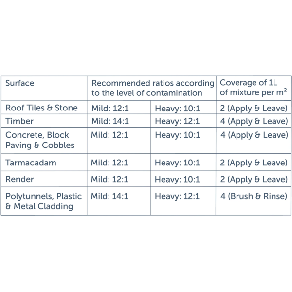 Actiwash affects the proteins and cell membrane of microorganisms, consequently causing the release of nitrogen and phosphorus from cells. Where an apply and leave application is used, the processes of natural weathering work to eliminate the dead biofilm staining.